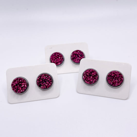 Charis Style - 10 MM Studs - Dark Pink Druzy and Gunmetal Silver