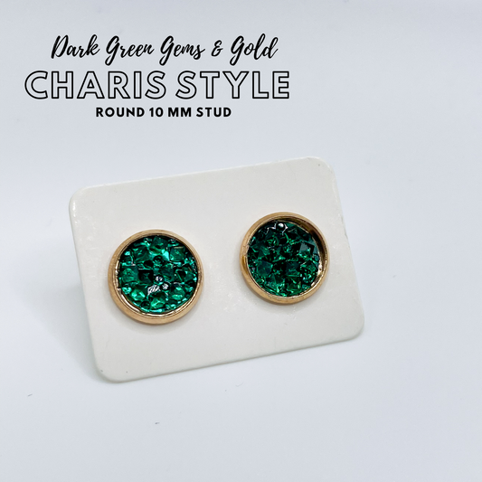 Charis Style - 10 MM Studs - Christmas Colors Red and Green in Gold