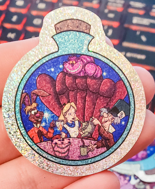 Curious Girl in a Bottle - Holographic Glitter Vinyl Stickers