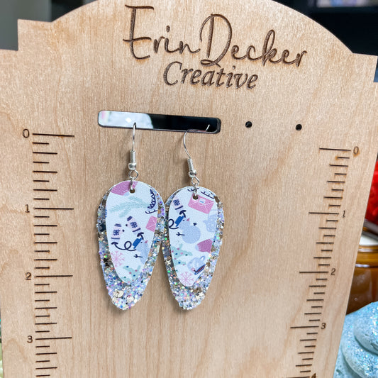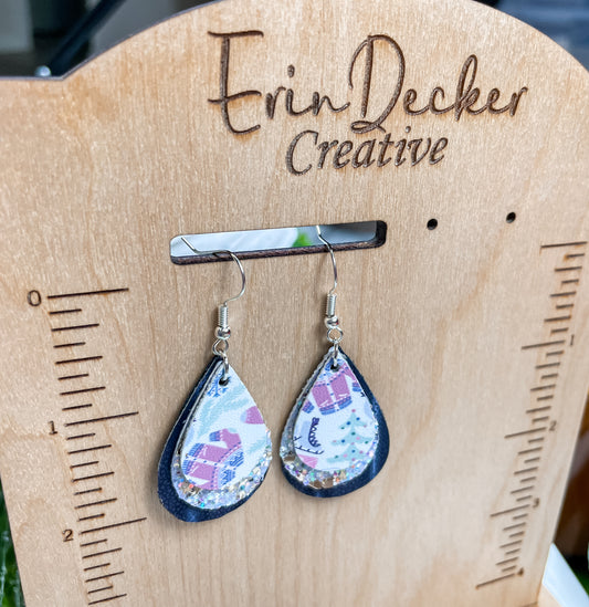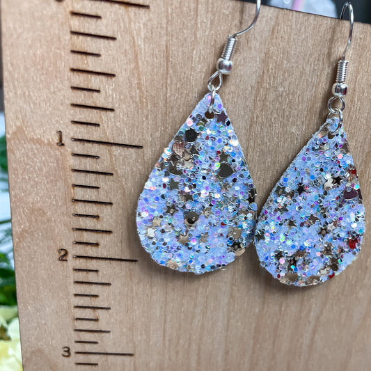 Winter Blues Glitter Earrings | Emily Style Dangle Earrings | Layered Teardrop Shape