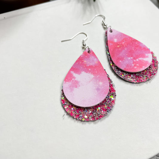 Hot Pink Galaxy Earrings | Emily Style Dangle Earrings | Layered Teardrop Shape