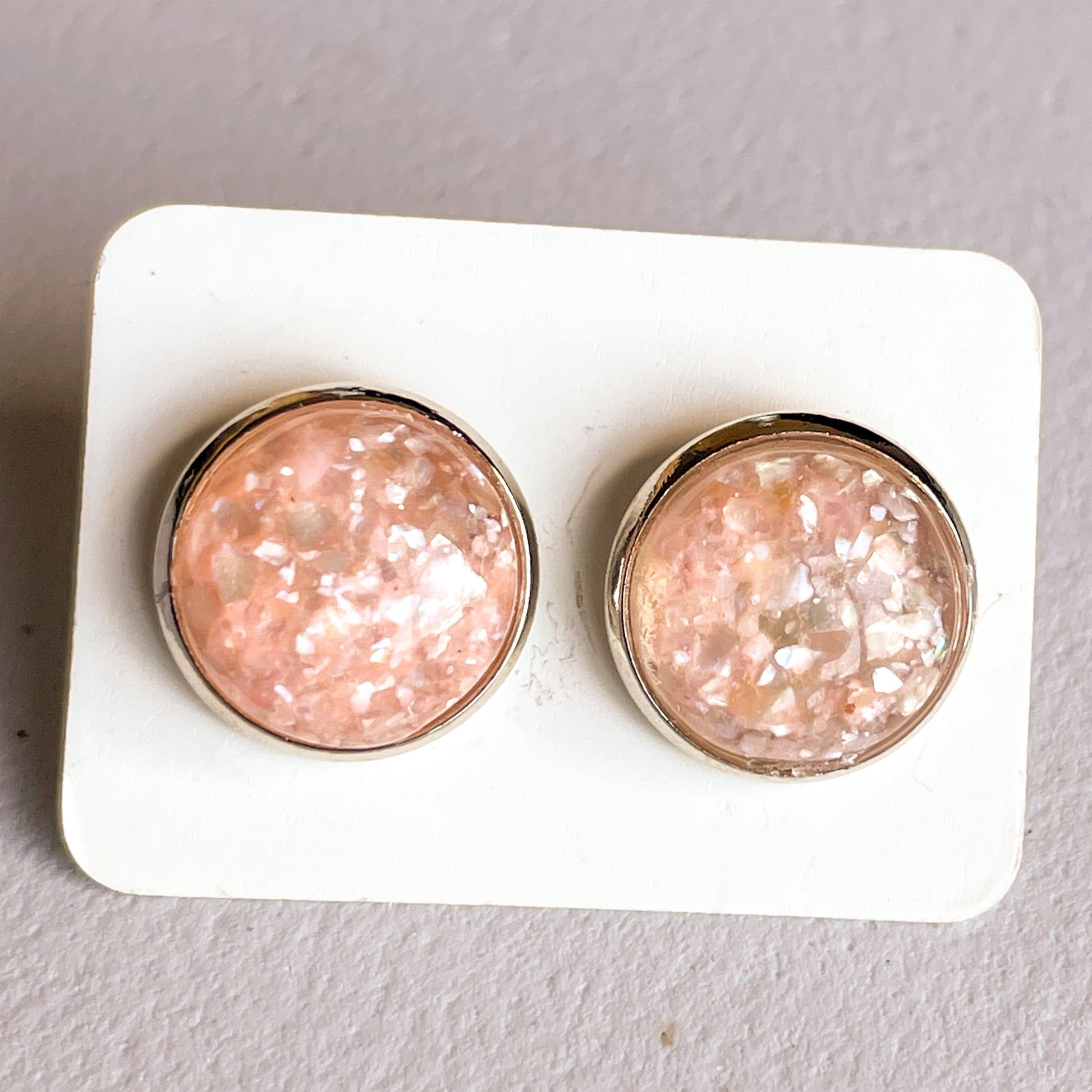 Light Pink Shattered Opal Katelyn Style Earrings |12 MM Round Studs | Round Stud Earrings