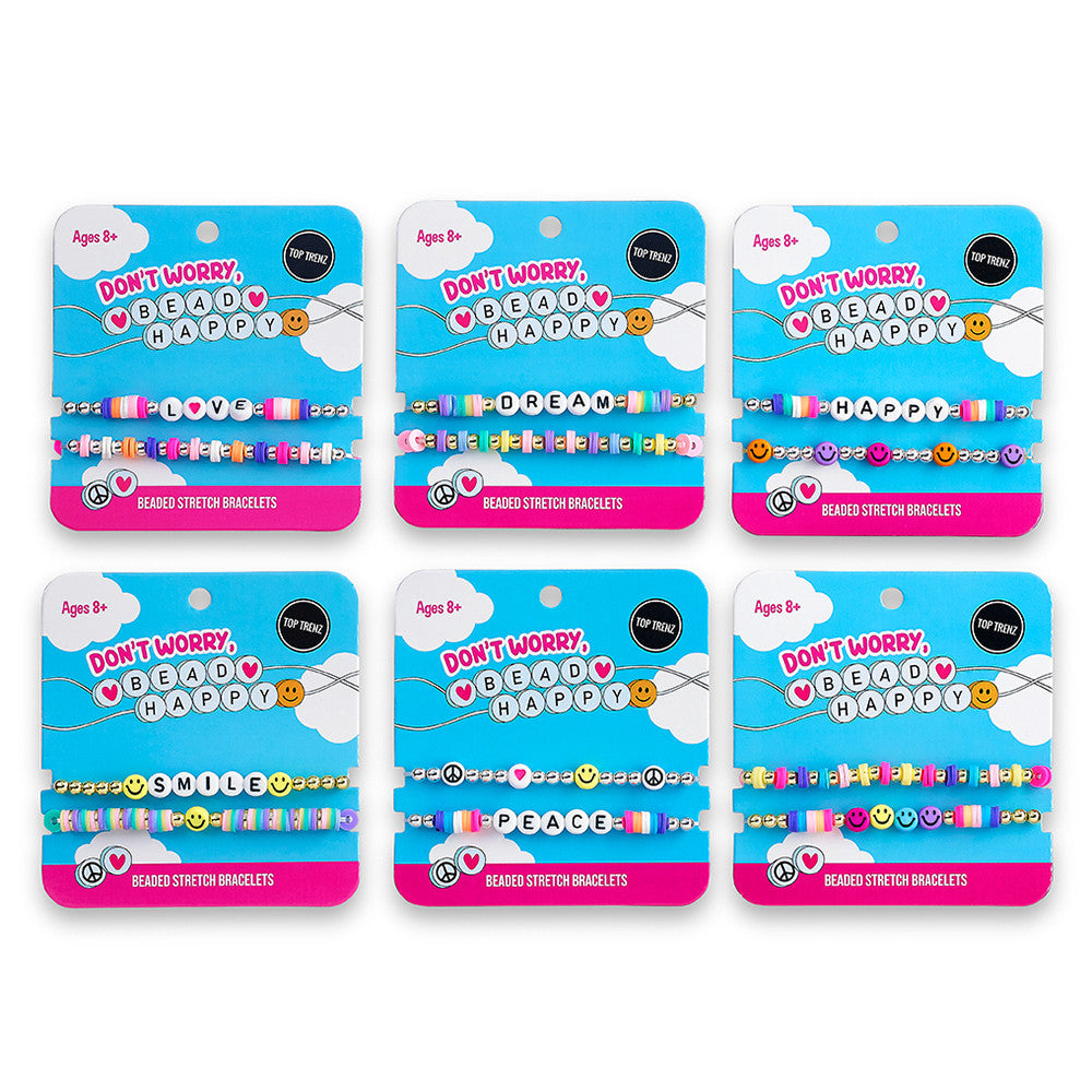 Stay cute and stylish with these Don't Worry Bead Happy Beaded Stretch Bracelets.