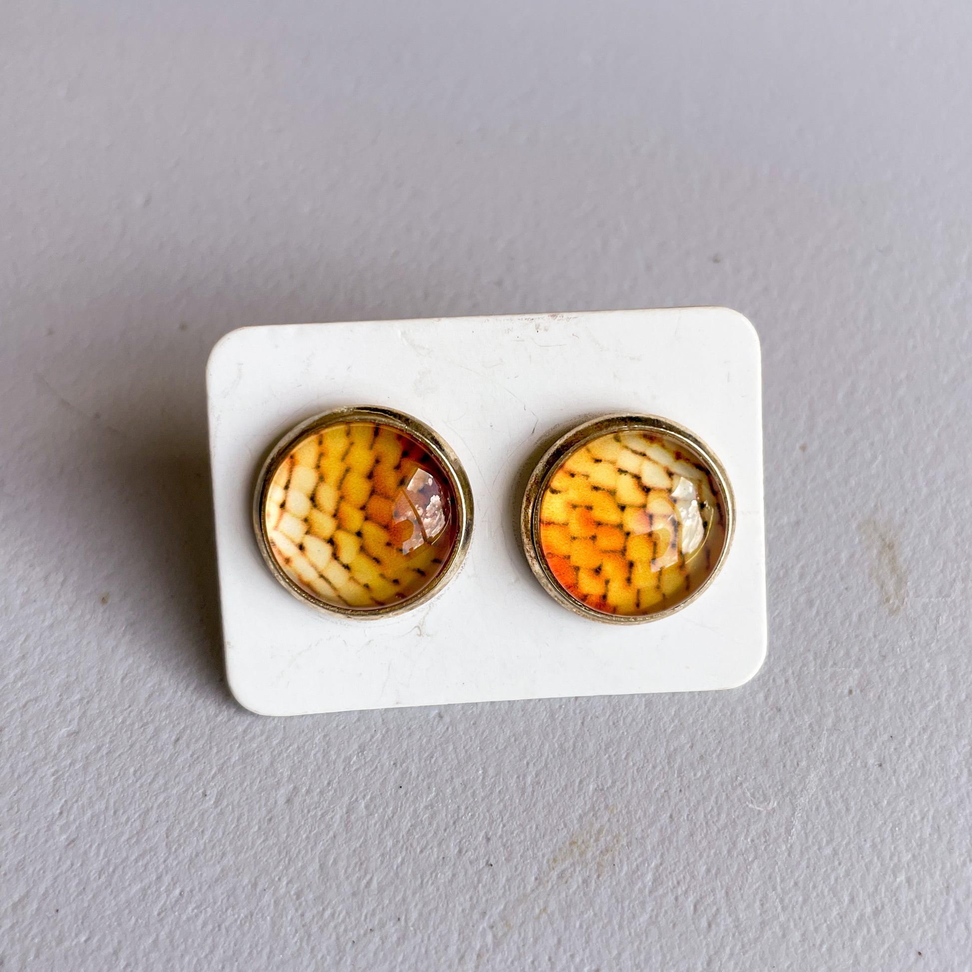 Orange Dragon Scales Katelyn Style Earrings |12 MM Round Studs | Round Stud Earrings